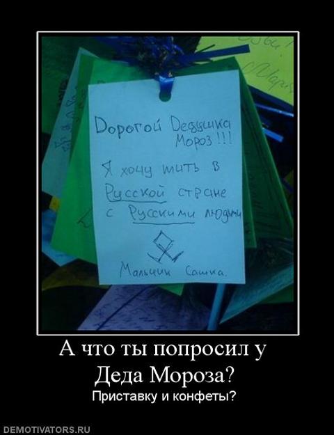…народ был у Вас в Московии, а потом взял и извелся весь. Оно и понятно, ВВП и зомбоящик делают свое дело. Сейчас в инете одобрямсами срете на демы расистские..., а кто посмелее, тот на Манежке рога ломает. За идею боретесь, но на нее же и напоретесь. Потому что эта политика ведет к одному – тотальное ужесточение полицейского государства.